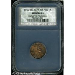 <B>1955/55 1C Doubled Die AU Details, Improperly Cleaned, NCS.</B></I> FS-021.8. Retoned in golden-brown and mahogany colors that are a bit deeper on the reverse. A richly detailed example of this spectacular doubled die variety. Lot:5568