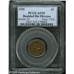 <B>1955/55 1C Doubled Die AU50 PCGS.</B></I> FS-021.8. A chocolate-brown Cent with the spectacular obverse doubling of this famous and popular variety. Scattered trivial ticks do not affect the pleasing eye appeal. Lot:5567