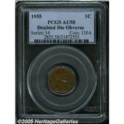 <B>1955/55 1C Doubled Die AU58 PCGS.</B></I> Sharply struck with dark chocolate surfaces and nearly full satiny luster. This issue has gained substantially in popularity (and also in value) over the past few years.