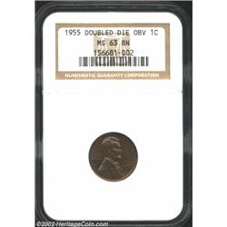 1955/55 1C Doubled Die MS63 Brown NGC. Hints of reddish-violet remain in the most protected areas of the obverse. One grade-limiting mark is seen in the right obverse field above that date. An extremely popular, well known, modern-day error Cent.From the Robert Tarr, Sr. Collection. Important notice: We expect to be auctioning lots at the rate of 200-250 per hour. Sometimes eBay Premier live bid software cannot keep up with that pace, so we strongly recommend that you place a realistic proxy bid now as insurance to avoid disappointment. Also please note that all Heritage/CAA lots purchased through eBay Premier carry a 20% Buyer's Premium. Please make sure you read the Terms and Conditions.
