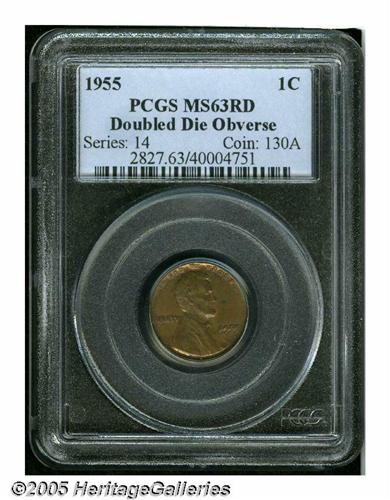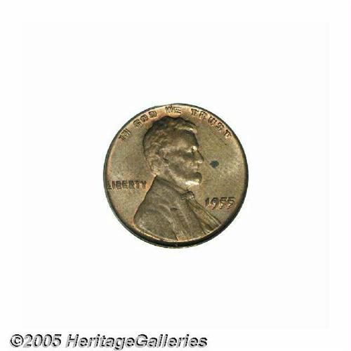 <B>1955/55<1C> Doubled Die MS63 Red PCGS.</B></I> Each side is covered with rich glossy brown patina and the devices show a bright outline of original red luster. A spot is noted in the right obverse field in front of Lincoln's nose and there is a thin planchet lamination at the top of his head--these defects being responsible for the MS63 grade.<BR><I>From The William Bickel Collection, Part One.</B></I>