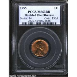 1955/55 1C Doubled Die MS63 Red PCGS. This always-popular error was struck during the graveyard shif