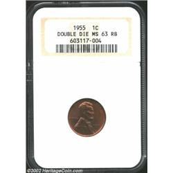 1955/55 1C Doubled Die MS63 Red and Brown NGC. With deep, mellow, glossy hues, this is a very handso