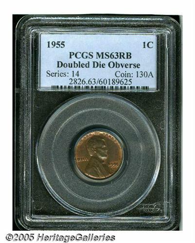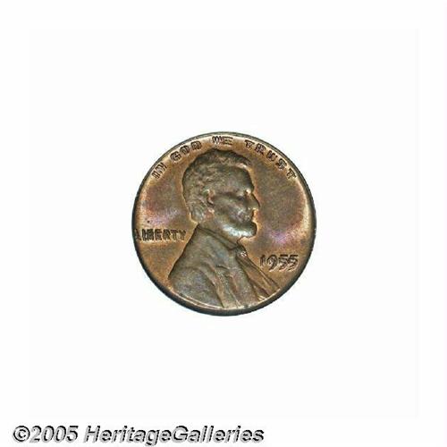 <B>1955/55<1C> Doubled Die MS63 Red and Brown PCGS.</B></I> This popular doubled die reveals glimpses of coppery-orange color in the recessed areas. The design elements are adequately struck, and a few minute marks are noted on Lincoln's cheek. Some minor flecks on each side are not bothersome.