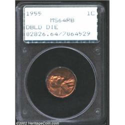 1955/55 1C Doubled Die MS64 Red and Brown PCGS. The obverse has considerable bright orange Mint colo