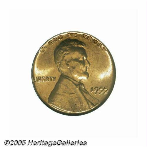 <B>1955/55<1C> Doubled Die MS65 Red PCGS.</B></I> A blazing fiery Gem example, and one of the finest we've seen or ever expect to see. The doubling at the date, at LIBERTY, and at IN GOD WE TRUST is about as bold as could be desired. The 1955 Double Die Obverse variety probably ranks as the single most celebrated doubled die error of the 20th century, and has been the subject of innumerable articles since the time it was minted back in 1955. The error was caused as a consequence of a change in the positioning of the hub with respect to the die after the die had already received at least one impression from the hub. Accordingly, when the die received a second impression from the hub, the date and obverse letters all became radically doubled. This ordinarily would have resulted in the obverse die being rejected from use, but the mint workers responsible for quality control failed to notice the error until several thousand impressions had already been produced from the dies. Although some numismatists noticed the new variety almost immediately, it took several years for the 1955 Doubled Die to capture the full attention of the numismatic community, and ever since that time, the variety has been esteemed and eagerly sought in all grades of condition. Unlike most pieces in the Lincoln cent series, which can be easily acquired in Gem Uncirculated condition, the 1955 Doubled Die is very elusive in the upper echelons of preservation. It appears that the vast majority of survivors had already entered into the channels of commerce before the collecting community was fully aware of the variety's existence, and hence only a small portion of those seen today grade above MS63, and many collectors have to be content with examples that are in the XF to AU range. Here's an excellent opportunity to acquire one of the most important 20-century cent varieties in a grade of condition seldom available to the collecting community. Once this Gem crosses the auction block, when will there be another opportunity to acquire such a treasure? Population: 18 in 65, 0 finer (6/05).