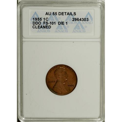 <B>1955/55 1C Doubled Die Obverse--Cleaned--ANACS. AU55 Details.</B></I> FS-101. DDO #1. The rich orange-gold color appears artificial, especially given the slight friction on Lincoln's cheekbone and jaw, but the fields are lustrous and mentionable marks are absent.<BR><BR><b>Shipping:</b> Coins & Currency (<a target="_blank" href="http://www.heritageauctions.com/common/shipping.php">view shipping information</a>)