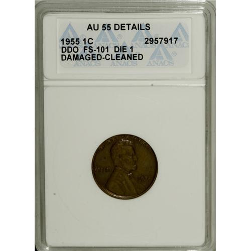 1955/55 1C Doubled Die Obverse--Damaged, Cleaned--ANAC