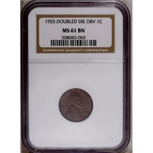 <B>1955/55 1C Doubled Die Obverse MS61 Brown NGC.</B></I> Even chocolate-brown toning covers typically marked surfaces that are remarkably well struck considering the assigned grade. Just a few minor marks are concentrated mostly on the obverse.