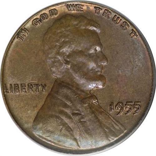 <B>1955/55 1C Doubled Die Obverse MS62 Brown PCGS.</B></I> A satiny and glossy example of this spectacular doubled die variety. The obverse is olive-gold and lilac-red, while the reverse is ruby-red with violet tints. Attentively struck, and post-strike contact is inconsequential for the assigned grade.<BR><BR><B>Coin Engraver:</B> Victor D. Brenner<BR><BR><b>Shipping:</b> Coins & Currency (<a target="_blank" href="http://www.heritageauctions.com/common/shipping.php">view shipping information</a>)