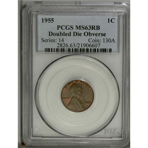 <B>1955/55 1C Doubled Die Obverse MS63 Red and Brown PCGS.</B></I> This is a pleasing Mint State example of the always-popular 1955 Doubled Die cent variety, one of the most obvious doubled dies in the entire series of U.S. coinage. This variety was quickly listed in the <I>Guide Book,</B></I> making its first appearance in the 1960 edition (published in 1959). Mostly blue and olive color is blended with considerable original orange mint luster.<BR><I>From The Park Cities Collection.</B></I><BR><BR><b>Shipping:</b> Coin/Currency (<a target="_blank" href="http://www.heritageauctions.com/common/shipping.php">view shipping information</a>)