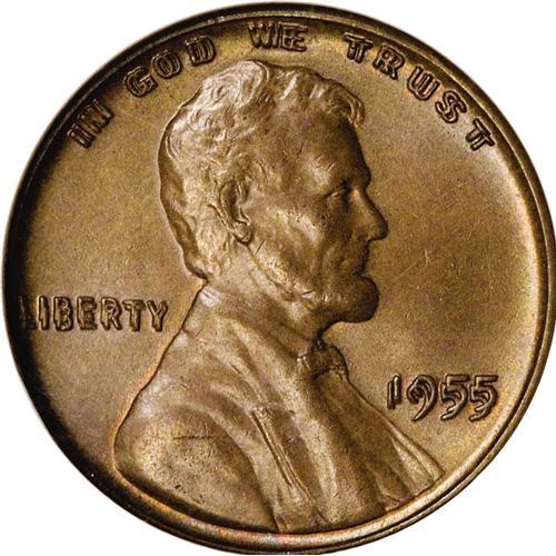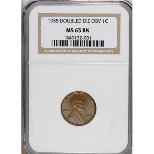 <B>1955/55 1C Doubled Die Obverse MS65 Brown NGC.</B></I> FS-101. Die #1. Dramatic doubling occurs on the date and obverse lettering. This is a most pleasing representative of this popular Lincoln cent variety. Light to medium brown semi-glossy surfaces display traces of mint orange clinging to some of the design elements, especially on the obverse. A few minute marks do not distract. Census: 11 in 65 Brown, 0 finer (3/07).<BR><BR><b>Shipping:</b> Coins & Currency (<a target="_blank" href="http://www.heritageauctions.com/common/shipping.php">view shipping information</a>)