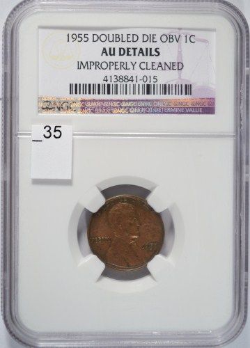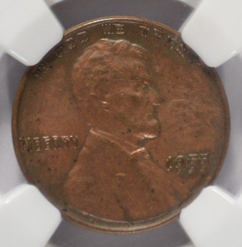1955/55 LINCOLN ONE CENT NGC AU, LIGHT CLEANING, ITS AU58