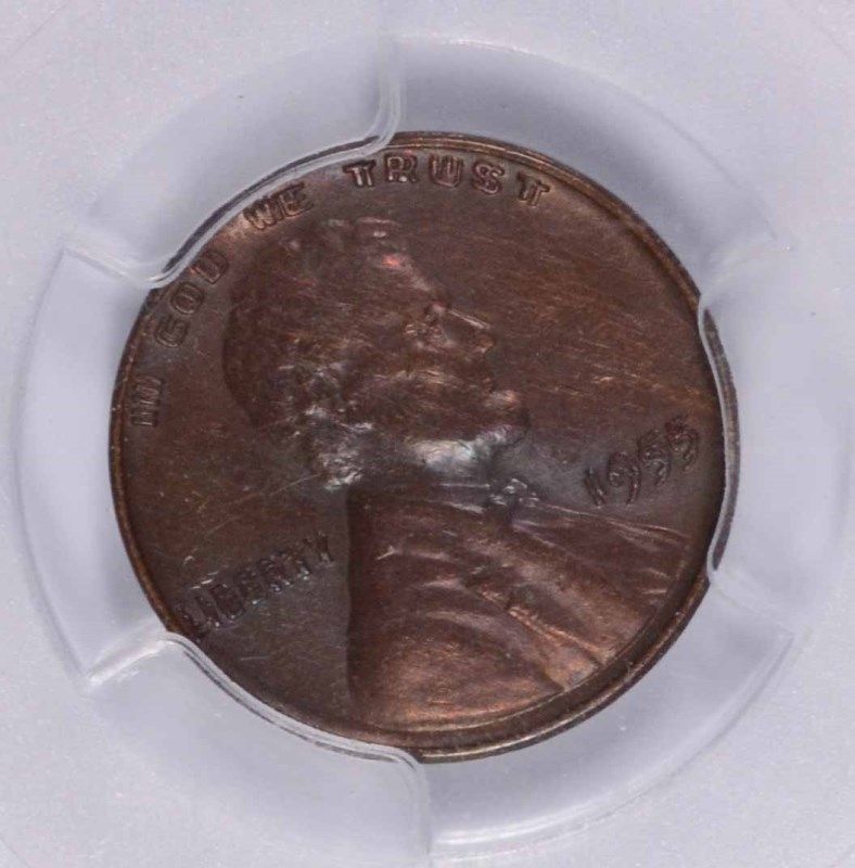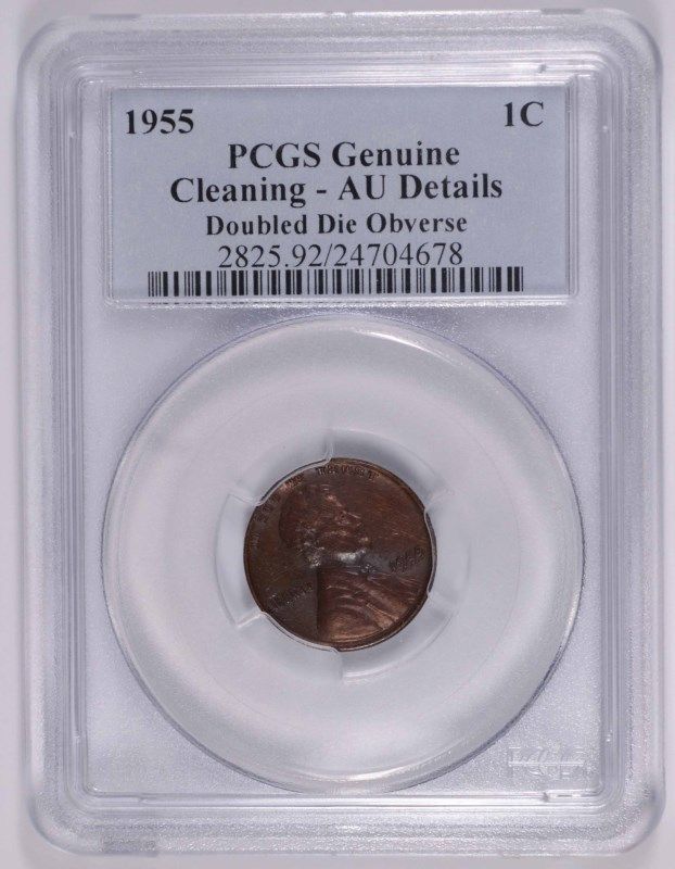 1955/55 LINCOLN ONE CENT PCGS AU, CLEANED, NICE, EST. $1575-$1625