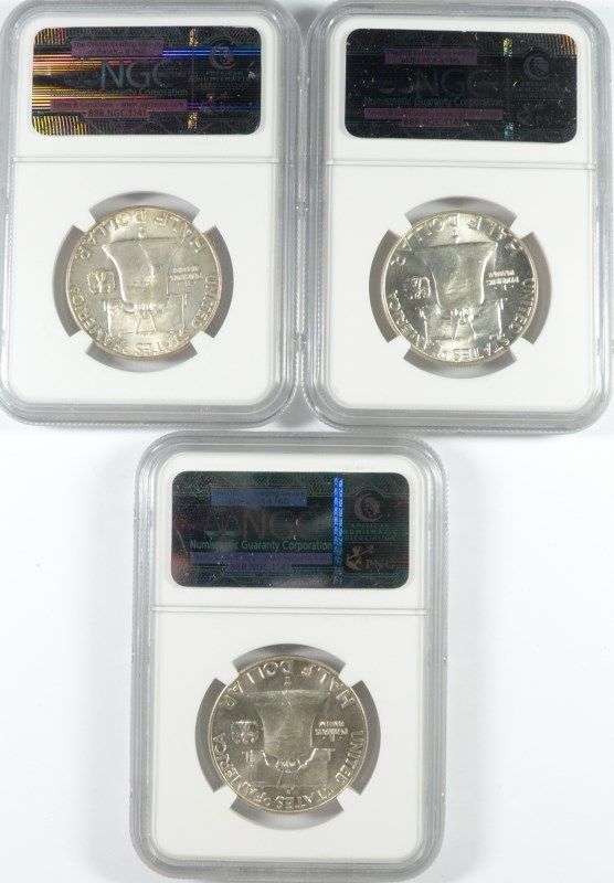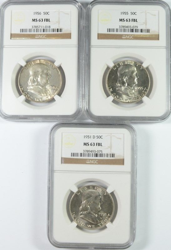 1955, 56, 51-D FRANKLIN HALF DOLLARS NGC MS-63 FBL