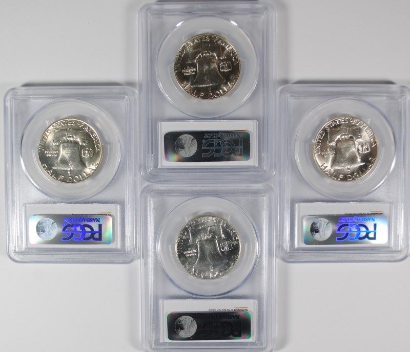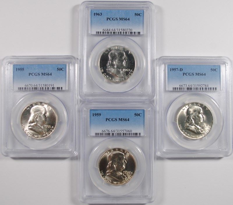 1955, 57-D, 59 & 63 FRANKLIN HALF DOLLARS, PCGS MS-64