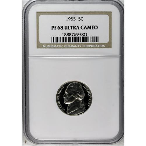 1955 5C PR68 Ultra Cameo NGC. The immensely deep, inky
