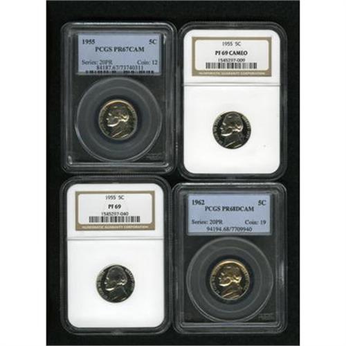 <B>1955 5C PR69 NGC; 1955 PR67 Cameo PCGS; 1955 PR69 Cameo NGC</B></I> and a <B>1962 PR68 Deep Cameo PCGS.</B></I><BR><BR><B>Coin Engraver:</B> Felix Schlag<BR><BR><b>Shipping:</b> Coin/Currency (<a target="_blank" href="http://www.heritageauctions.com/common/shipping.php">view shipping information</a>\)