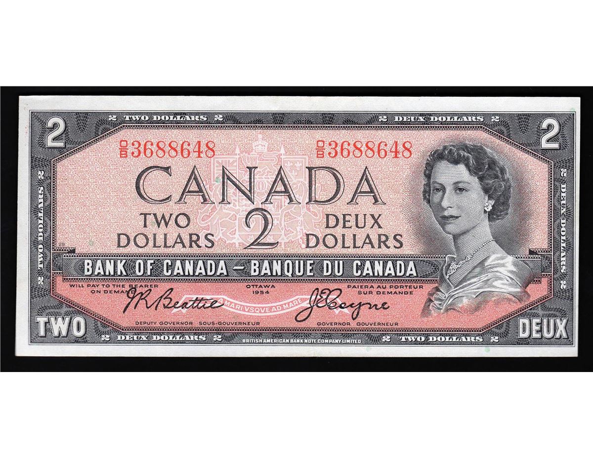One 1955-75 $2 Bank of Canada Currency Note.