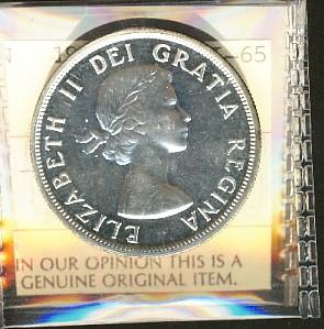 1955 Arnprior $1 Choice PL65. Brilliant and lustrous. Accompanied with the ICCS tag but not sealed.