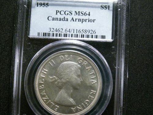 1955 Arnprior $1 PCGS MS64. Light golden tone over full underlying luster. A nice coin.