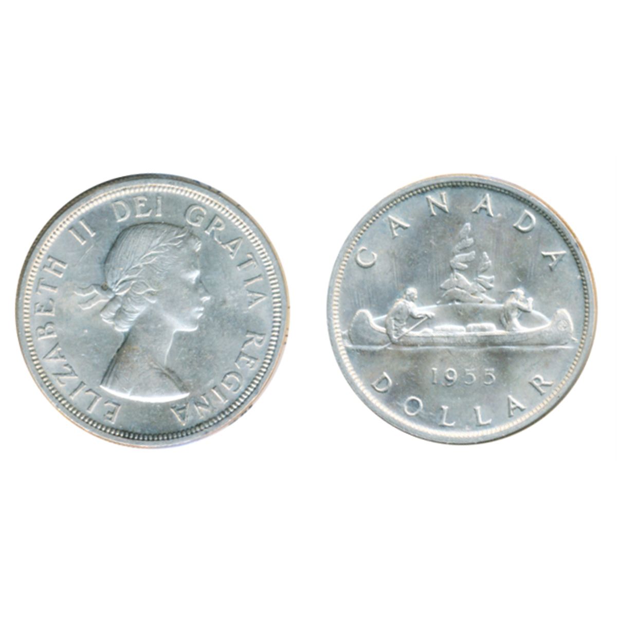 1955, Arnprior. With ‘Die Break’. ICCS Mint State-64. A brilliant dollar.