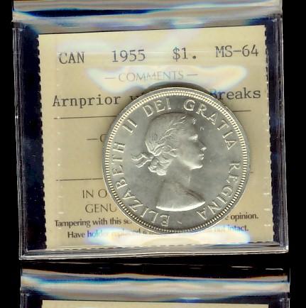 1955 Arnprior with D/B $1 ICCS MS64, brilliant and lustrous