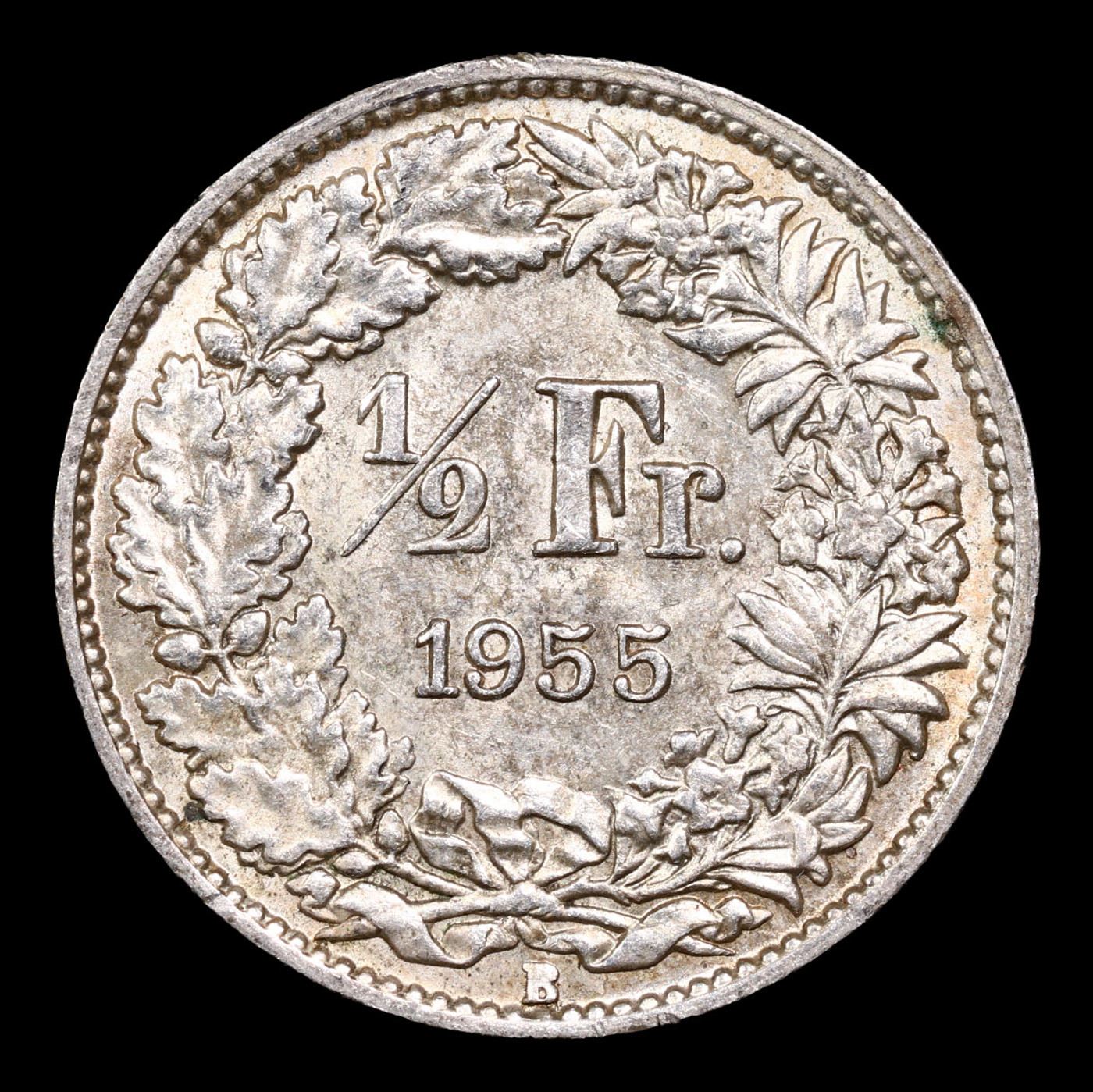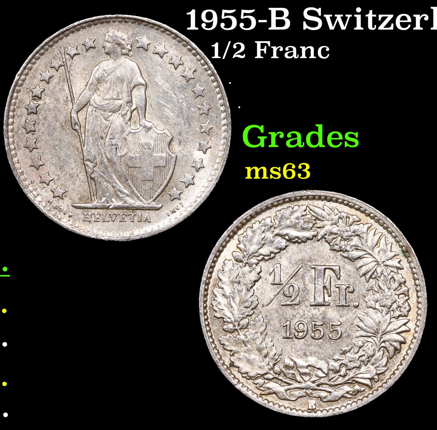 1955-B Switzerland 1/2 Franc KM-23 Grades Select Unc.
