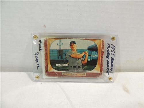 1955 BOWMAN #202 BASEBALL CARD MICKEY MANTLE. VERTICLE CREASE. AS SHOWN. VIEW PICTURE FOR DETAIL.