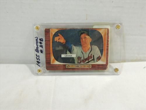 1955 BOWMAN #298 BASEBALL CARD CHARLIE GRIMM. VERTICLE CREASE. AS SHWON. VIEW PICTURE FOR DETAIL.