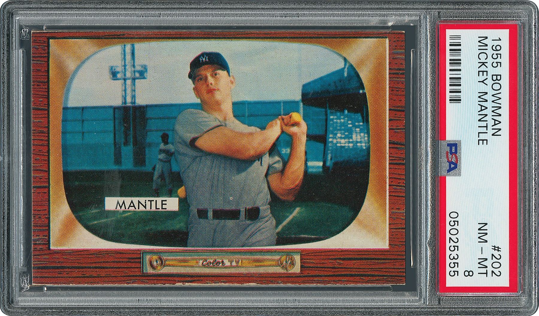 Graded by PSA NM-MT 8. Extremely well centered, sharp corners example of this tough card. With the flush to the edge brown borders, this issue is tough to find in high grade. High end.