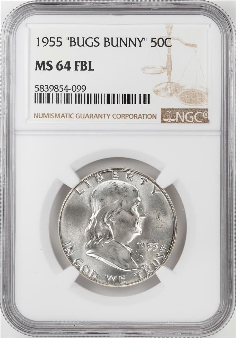 One 1955 "Bugs Bunny" Franklin Half Dollar Coin NGC MS64FBL. NGC Certified.