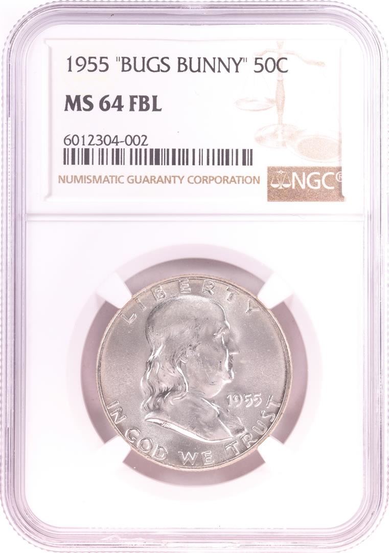 One 1955 "Bugs Bunny" Franklin Half Dollar Coin NGC MS64FBL. NGC Certified.