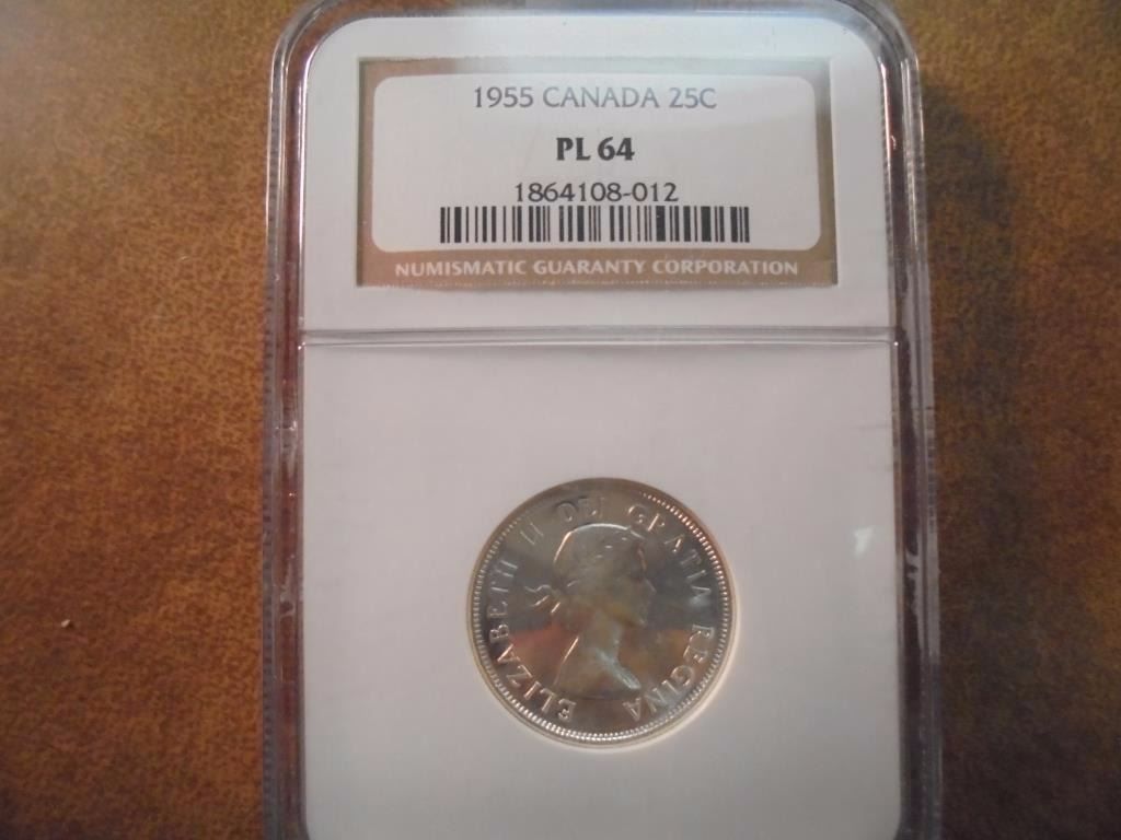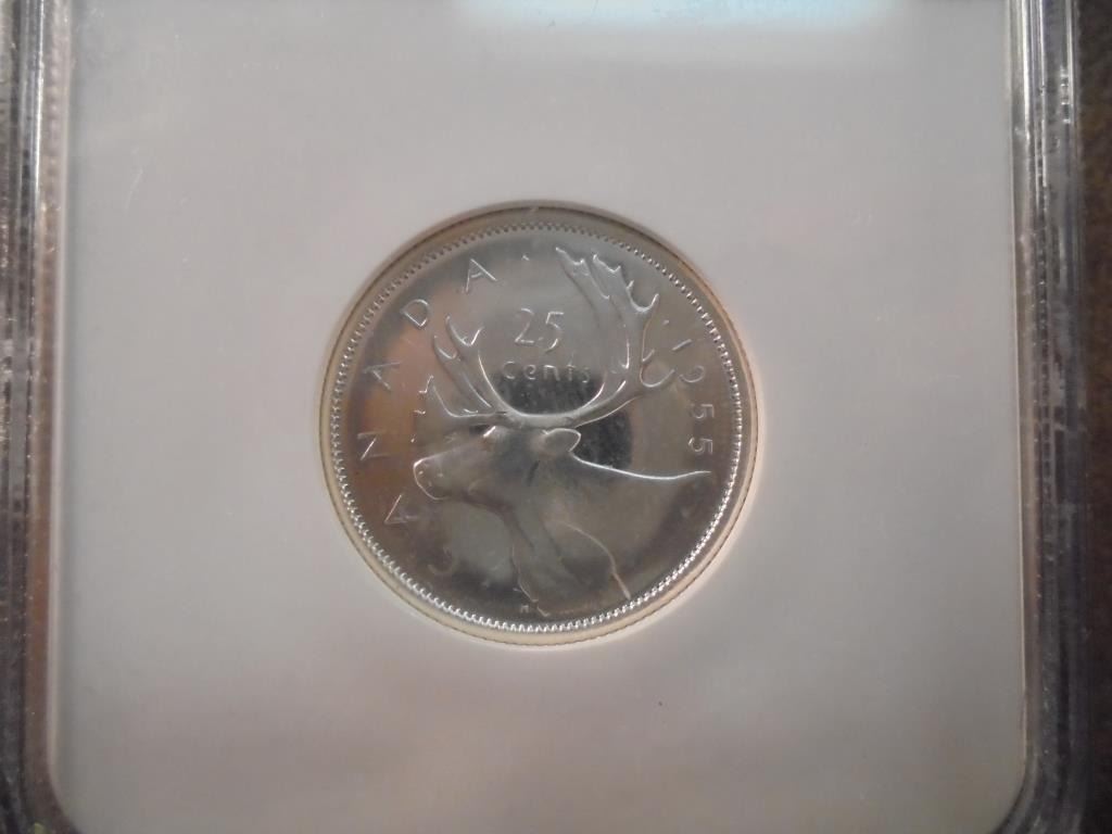 1955 CANADA SILVER 25 CENT NGC PL64
