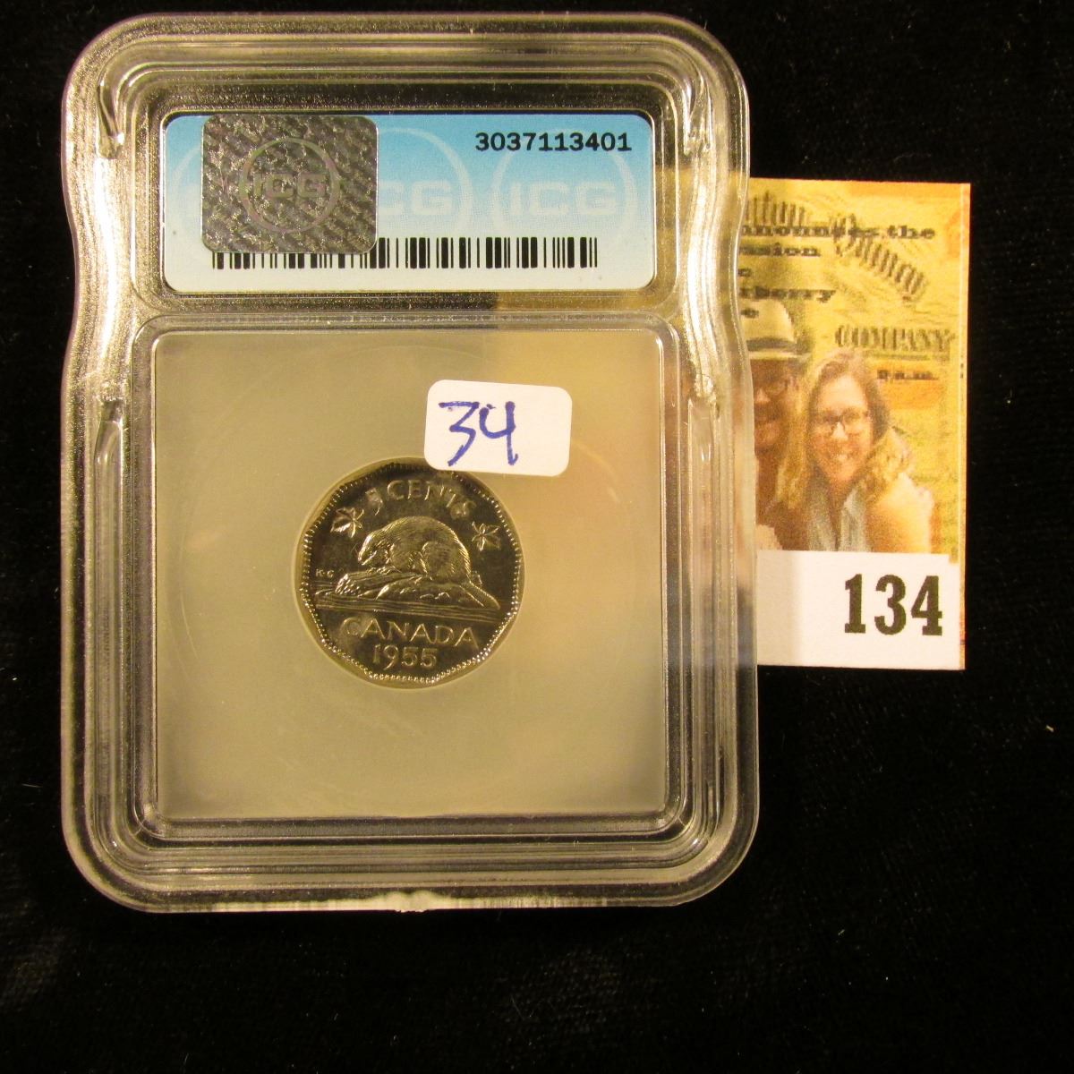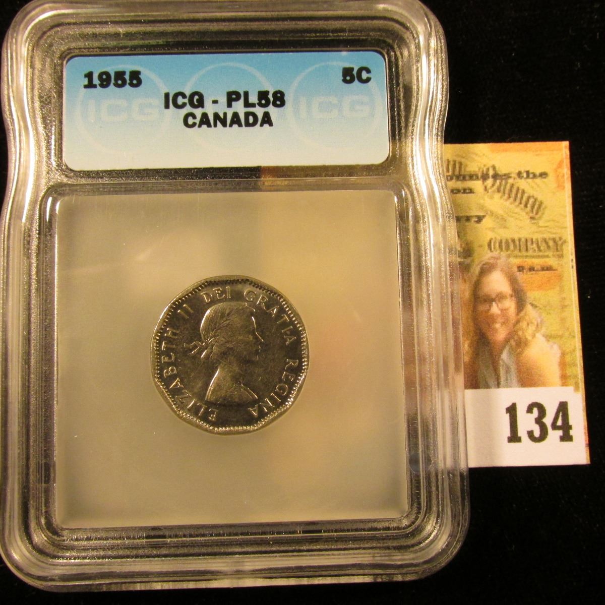 1955 CANADIAN NICKEL GRADED AU58 PROOFLIKE BY ICG