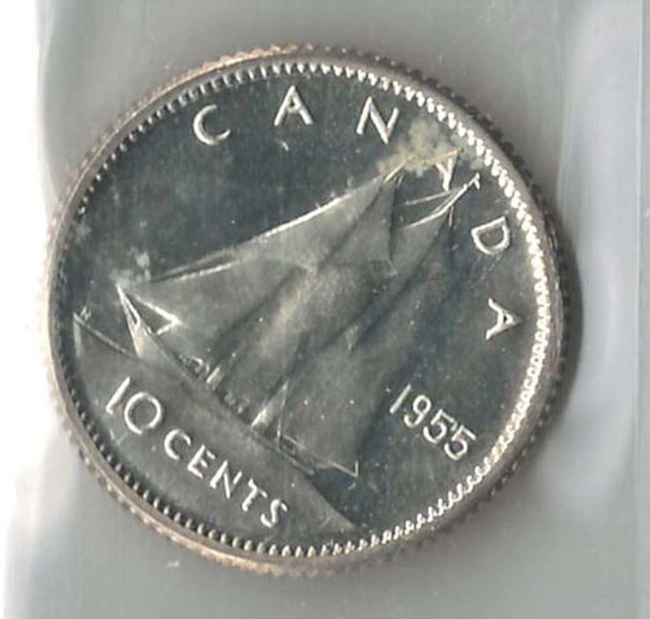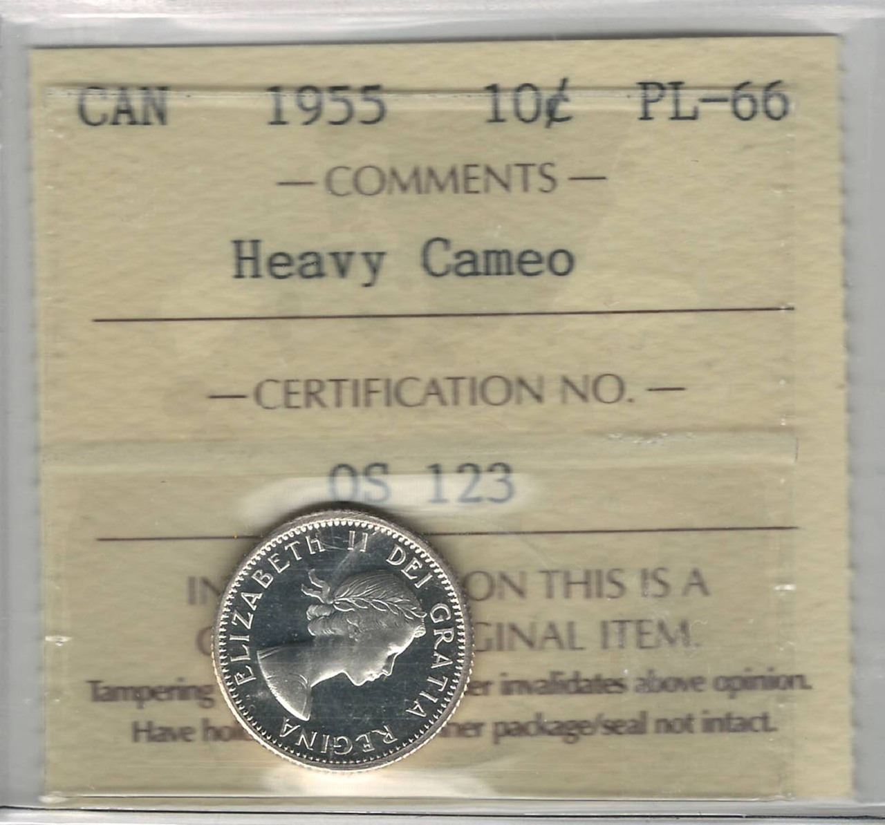 1955 Canada 10 Cent Heavy Cameo ICCS PL 66