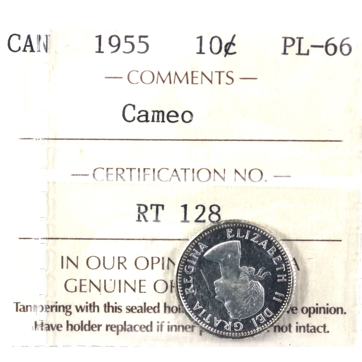 1955 Canada 10-cent ICCS Certified PL-66 Cameo.