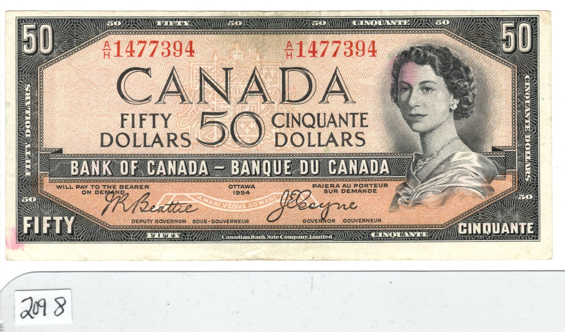 1955 Canadian $50 dollar bill with devil's face