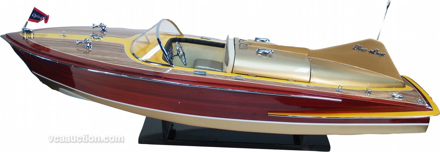 1955 Chris Craft Cobra Wooden Model Speedboat Scale 1:6, 36" long, 13" beam, beautifully hand built & fitted, a few minor deck cracks w/ display stand (non powered)