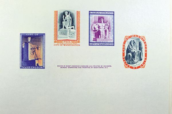 Washington D.C. theme intaglio prints, many by the Bureau of Engraving and Printing featuring Washington D.C. scenes, maps and President Eisenhower. 9 intaglio pages and 5 litho in plastic ring bound booklet. As made.