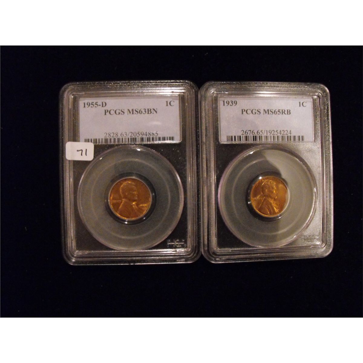 1955 D 1939 WHEAT CENTS PCGS UNC MS65 RB 63RB