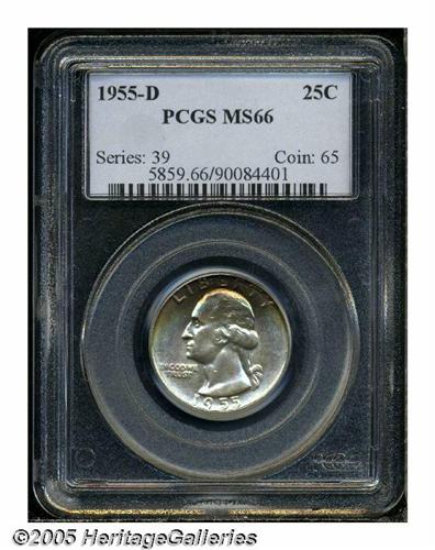 1955-D 25C MS66 PCGS. Well struck with soft, sati