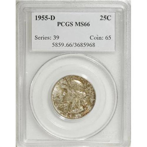 <B>1955-D 25C MS66 PCGS.</B></I> . PCGS Population (130/0). NGC Census: (353/29). Mintage: 3,182,400. Numismedia Wsl. Price for NGC/PCGS coin in MS66: $120. (#5859)<BR><BR><B>Coin Engraver:</B> John Flanagan<BR><BR><b>Shipping:</b> Coins & Currency (<a target="_blank" href="http://www.heritageauctions.com/common/shipping.php">view shipping information</a>)