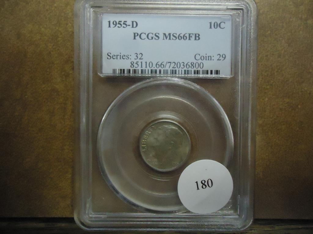 1955-D SILVER ROOSEVELT DIME PCGS MS66 FB TONED