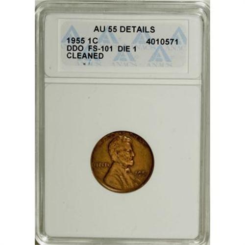 <B>1955 1C Doubled Die Obverse--Cleaned--ANACS. AU55 Details.</B></I> FS-101. The most famous of the many Lincoln cent doubled dies. This cent is too bright for its brief circulation, but no hairlines are obvious, and the devices show little evidence of wear.<BR><BR><B>Coin Engraver:</B> Victor D. Brenner<BR><BR><b>Shipping:</b> Coins & Currency (<a target="_blank" href="http://www.heritageauctions.com/common/shipping.php">view shipping information</a>)