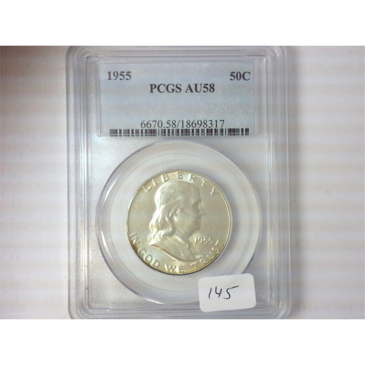 1955 FRANKLIN HALF DOLLAR PCGS AU58