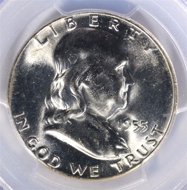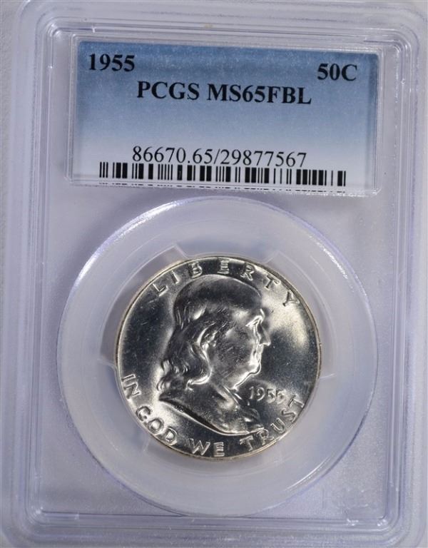 1955 FRANKLIN HALF DOLLAR, PCGS MS-65 FBL ESTIMATE $120 - $130.