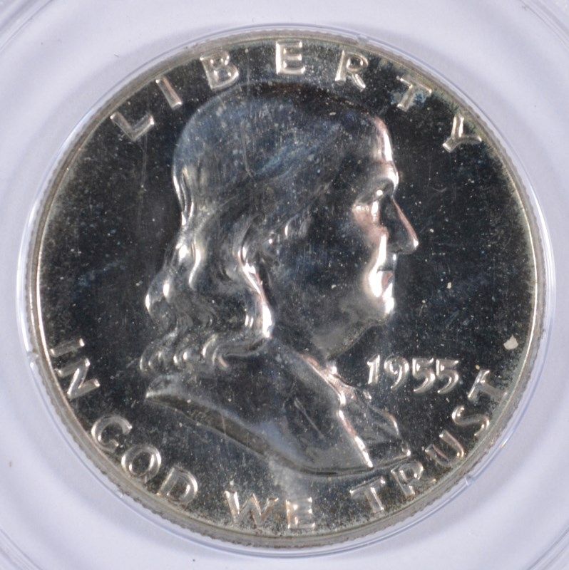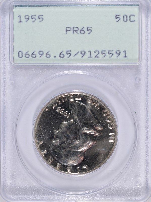 1955 FRANKLIN HALF DOLLAR, PCGS PR-65 GREEN LABEL