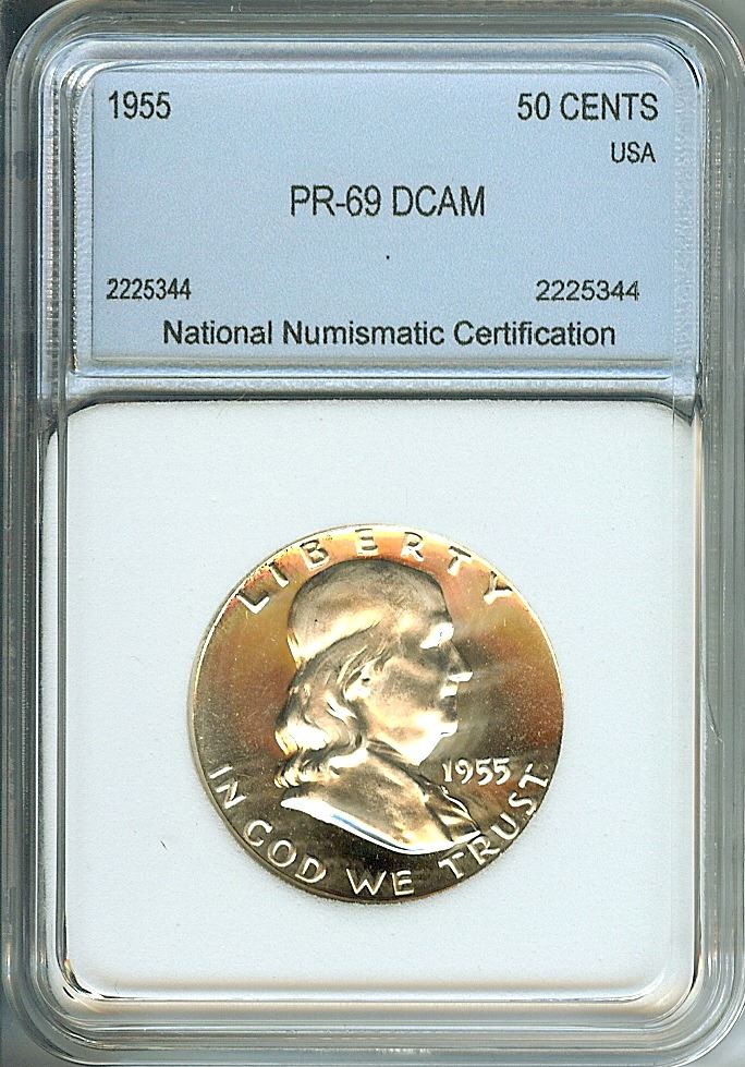 1955 FRANKLIN SILVER 50 CENTS NNC PR-69 DCAM