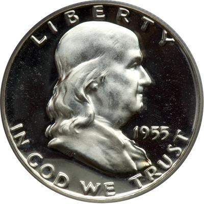 1955 Franklin Half Dollar. PCGS graded Proof 67 Deep Cameo. Totally white. Pop 41; 16 in 68 DCAM (PCGS # 96696) .